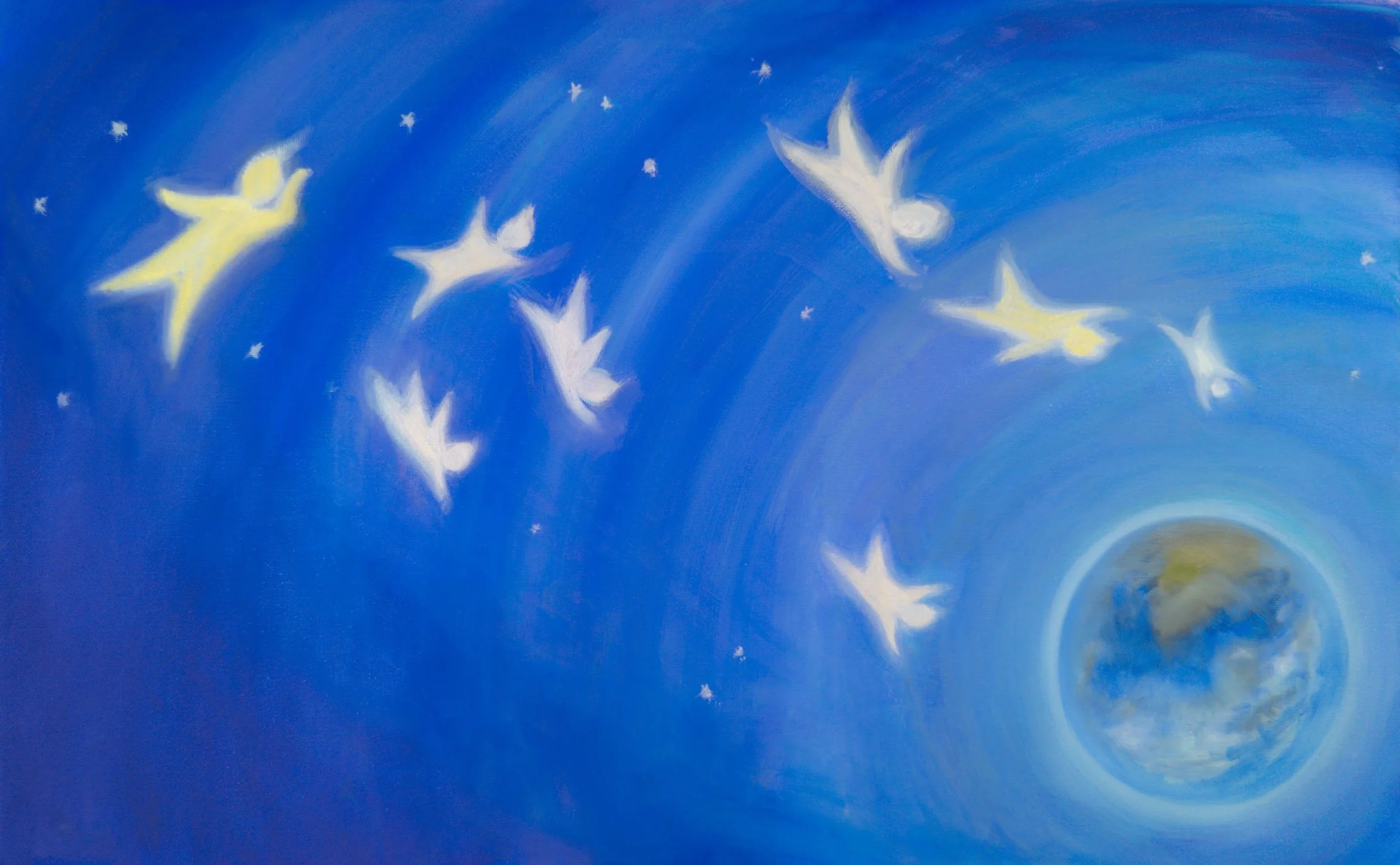 Join a group of little stars as they dance across the cosmos, glide over Earth's wondrous landscapes on a magic carpet, and joyfully choose the loving parents and home where they are meant to be born.